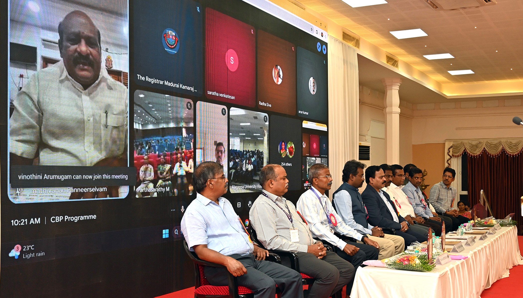 Honourable Thiru R.N. Ravi, the Governor of Tamil Nadu, formally inaugurated the event from Rajbhavan, Chennai through online. Thiru. S. Madhavan and Thiru. V. Balasubramanian from the University Informatics Centre were assigned as nodal officers from Bharathidasan University to Rajbhavan, Chennai, in order to organise the online inauguration.