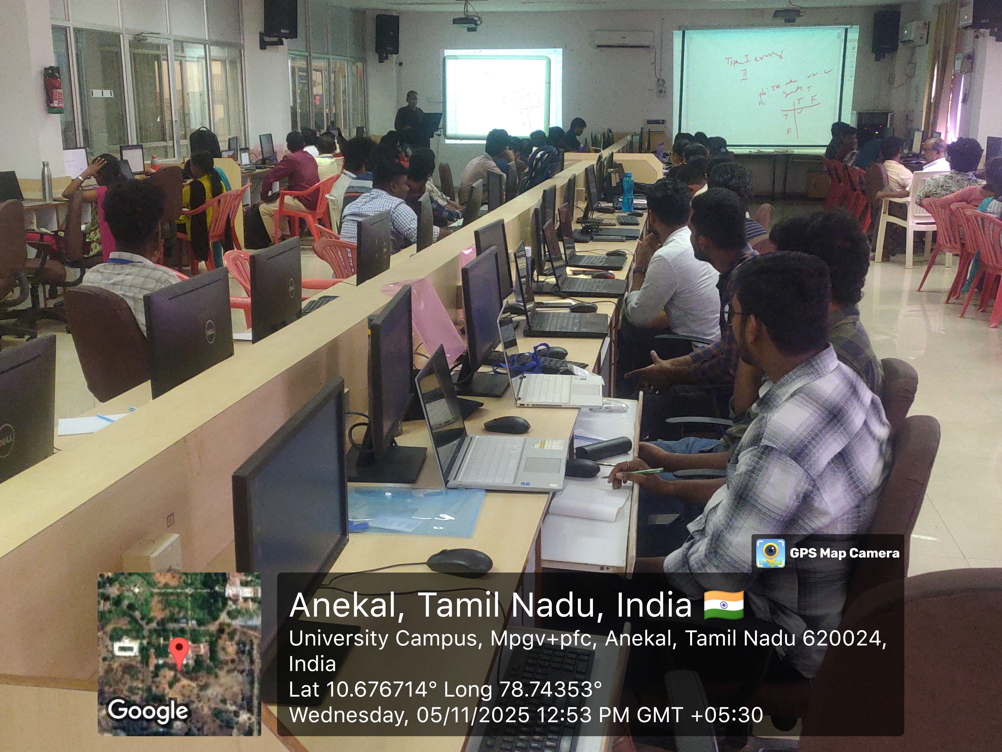The Dept. of Geography, Bharathidasan University organized a RUSA Sponsored for the "Five-Day Training Programme on Mapping with Open-Source GIS Technologies". A hands-on training programme was organized in the Central Computing Facility of the University Informatics Centre on Jamovi tool for the participants on 05/11/2025. More than 90 members attended the hands-on programme.